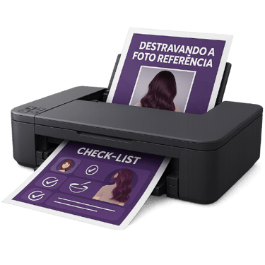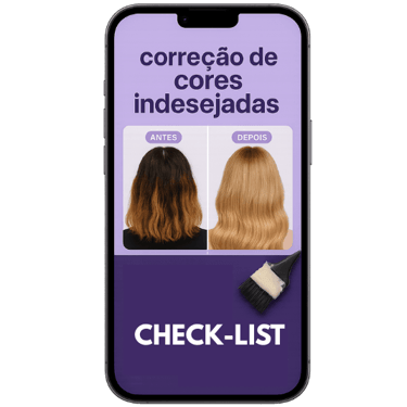 Basta imprimir um checklist e acessar um tutorial rápido (17 minutos) de criação da cor, lá você vai descobrir como definir a altura de clareamento e a neutralização da cor indesejada para fazer a tonalização perfeita.